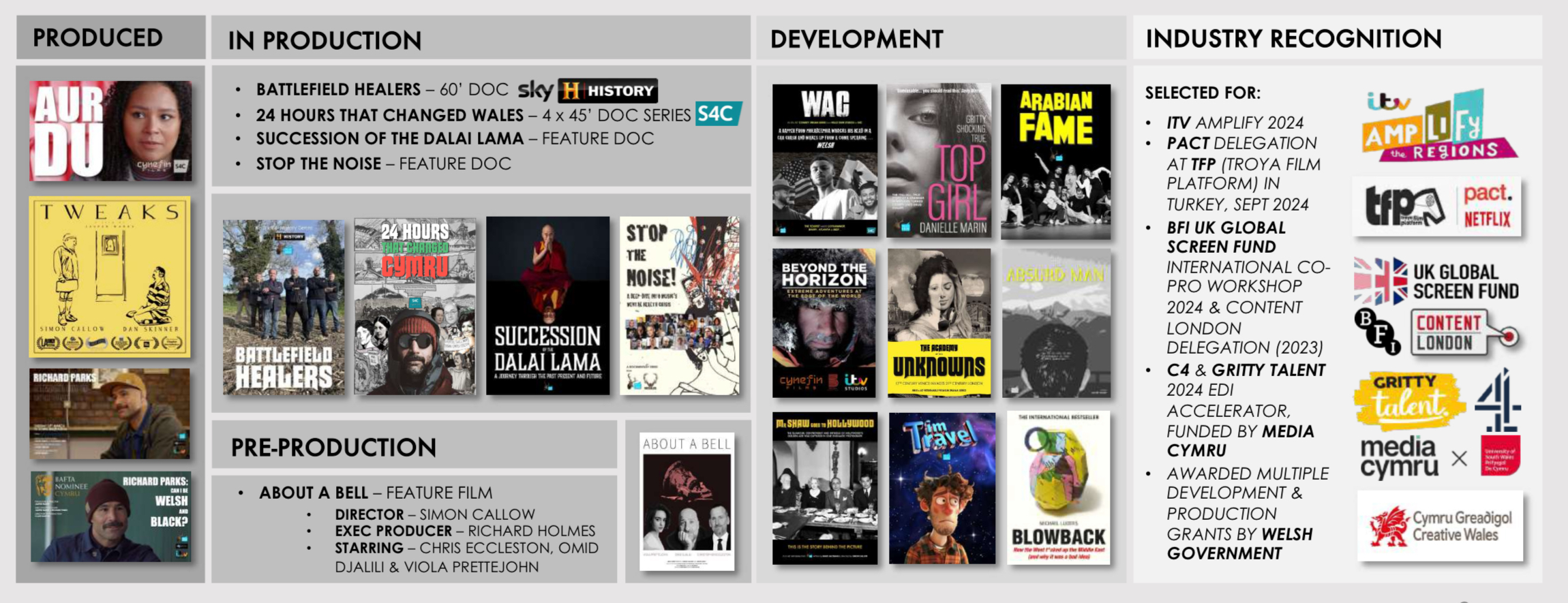A member of BAFTA, he’s sat on the BAFTA Cymru Regions Committee, and was a PACT delegate at the 2024 Troya Film Platform in Turkey.